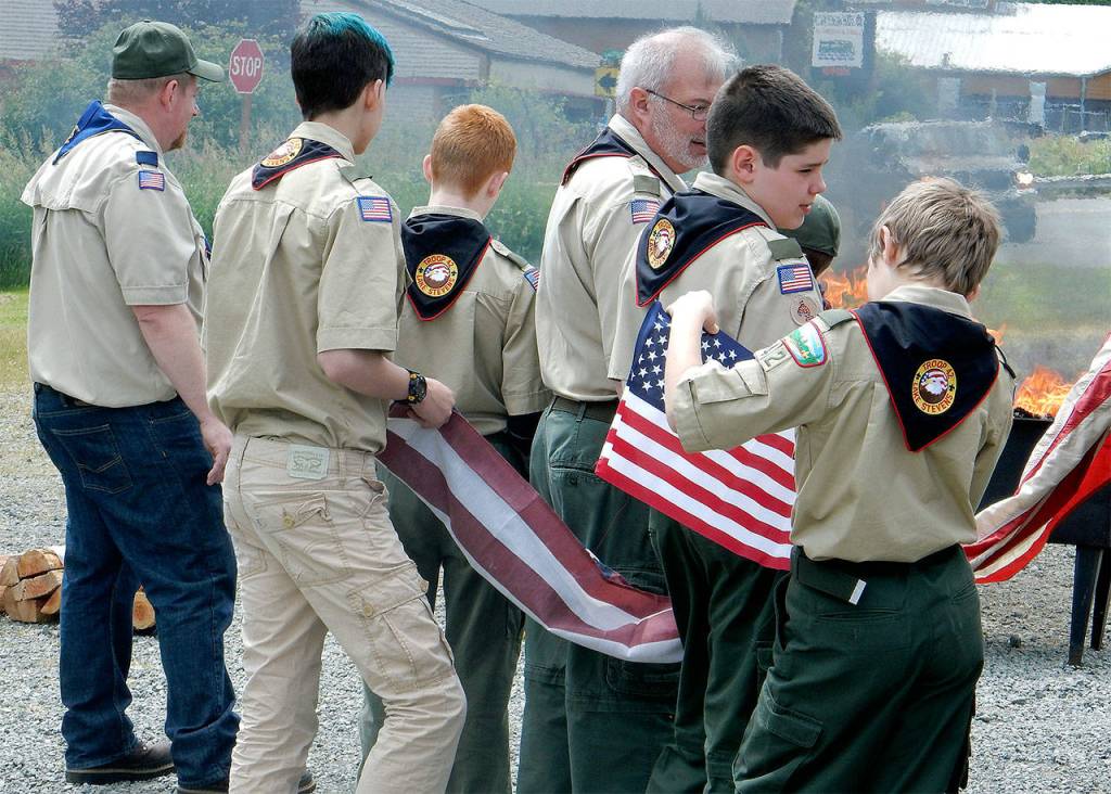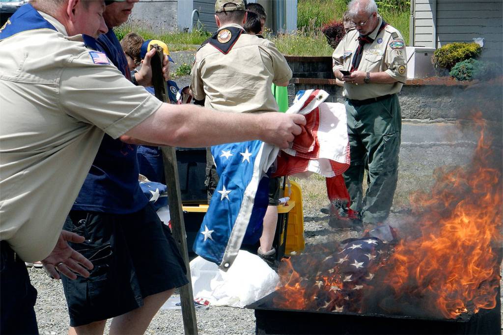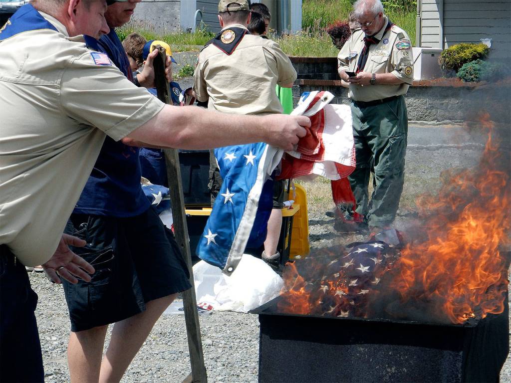 American Legion Post 181 in cooperation with Boy Scouts of America’s Mount Baker Council Troop 42 gathered June 10 to properly retire more than 315 U.S. flags.