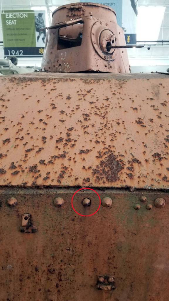 Dummy rivet really a ‘doorbell’ to WWII Japanese tank interior