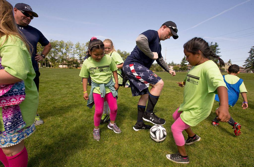 For $20, campers receive a T-shirt and a soccer ball. The Mukilteo School District serves breakfast and lunch for the week. Children also are given a one-year membership to the Boys &Girls Club of Snohomish County.