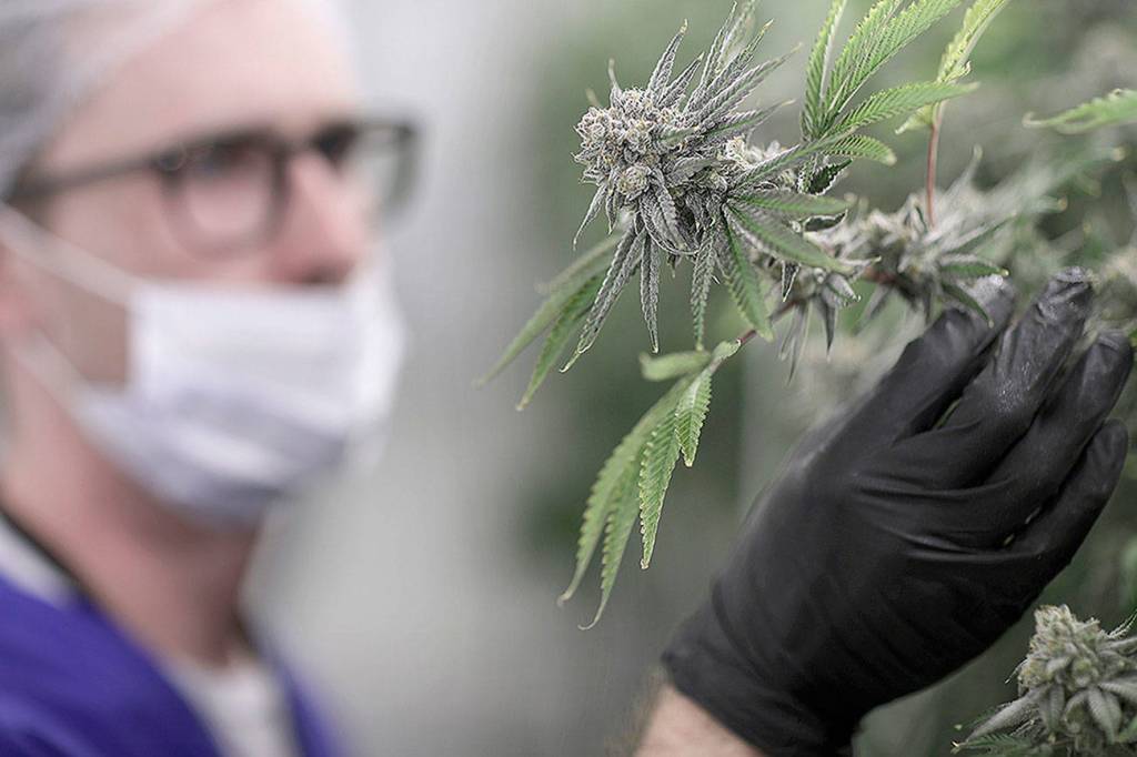 LAS VEGAS — At a nondescript building near the Las Vegas Strip, workers in scrubs, hair nets and surgical masks furiously attached labels to sealed jars as others checked on growing marijuana plants or carefully weighed buds.