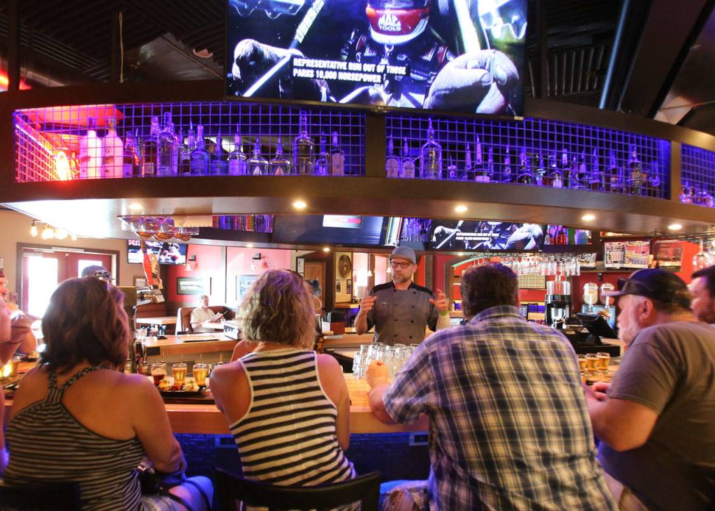 Greg Krsak (far right), owner and operator of Scrappy Punk Brewery, pours samples. (Kevin Clark / The Herald)