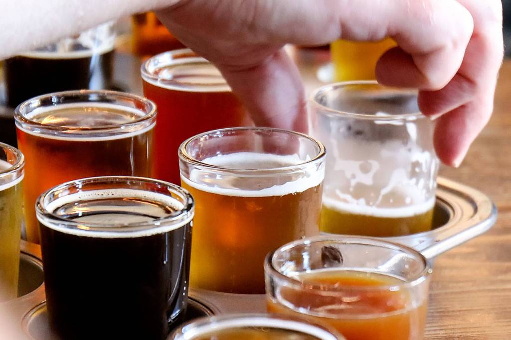 Microbrew samples at Sound to Summit are featured during the inaugural Soho Brew Tour in Snohomish on June 24. (Kevin Clark / The Herald)