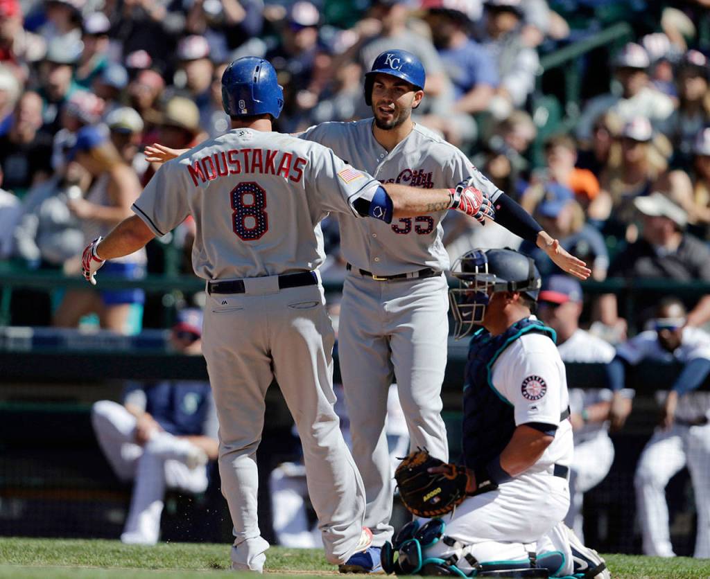 The Royals put runners at first and second with two outs, but third baseman Kyle Seager ended the inning with a diving catch on Mike Moustakas’ soft liner.