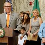 “We have stepped up,” said Inslee, surrounded by lawmakers and other paid leave supporters. He said that the new law makes sure that the state’s residents “have the ability to both care for their family and earn a paycheck.”