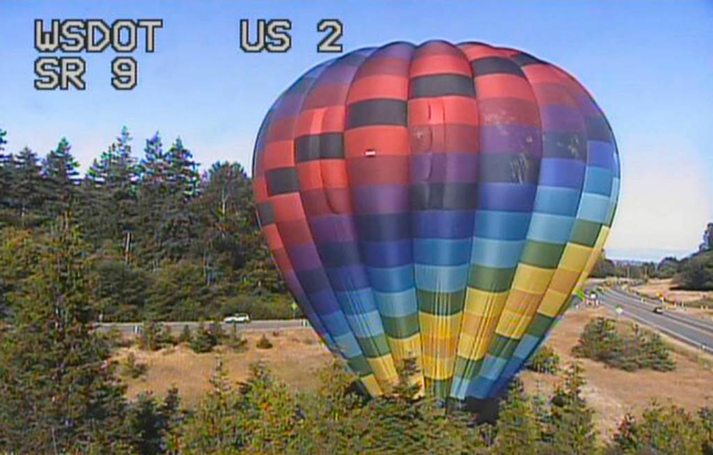 Hot air balloon gets stuck near highway in Snohomish