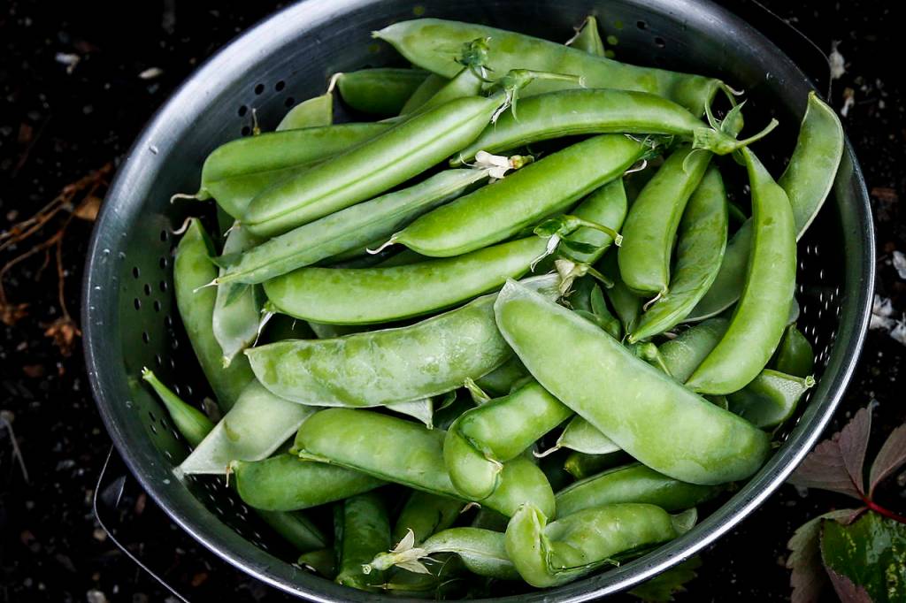 Harvested peas are seen in the Warm Beach community garden in Stanwood on July 20. (Ian Terry / The Herald)