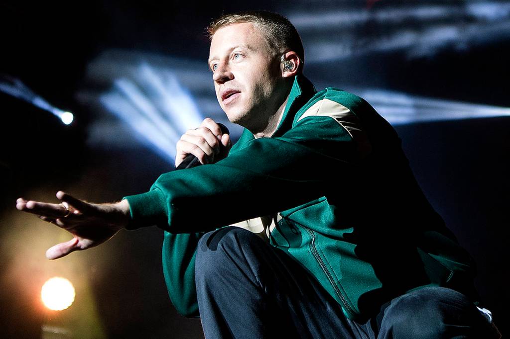 Ben Haggerty (aka Macklemore) performs in Nyon, Switzerland, Friday, on July 21. (Anthony Anex/Keystone via AP)