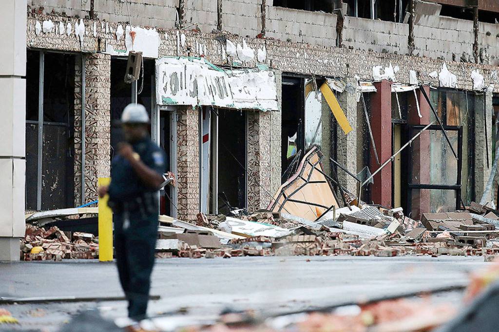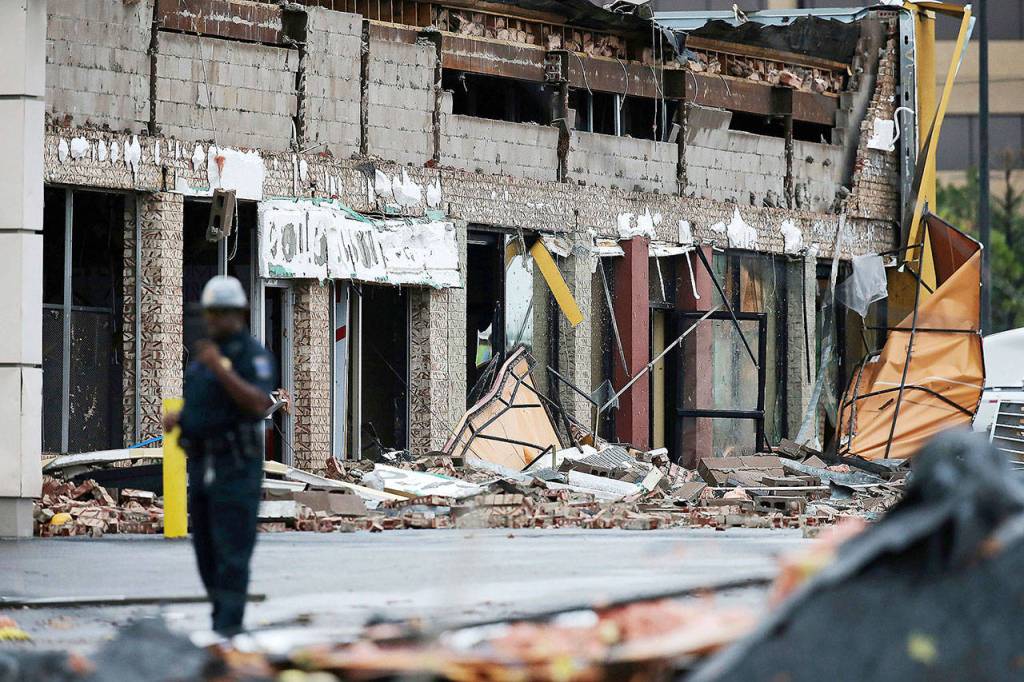 The estimated one-square-mile area remained blocked off Sunday while crews worked to remove the debris, Meloy said.