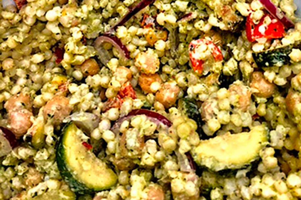 From Food Network Magazine. Look for Israeli couscous with the other grains like quinoa and cousous. The beads are much bigger than regular couscous.