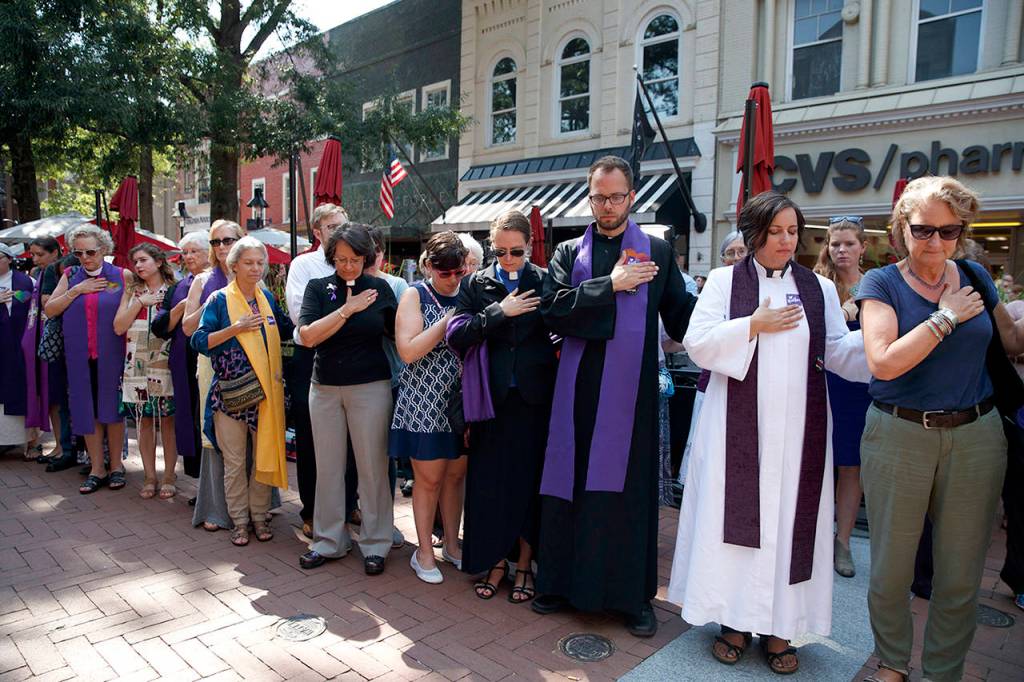 State troopers were stationed on the surrounding streets, but the white nationalists who had vowed to show up were nowhere to be seen among the residents, clergy and tourists outside the Paramount Theater, just blocks from where Heyer died.