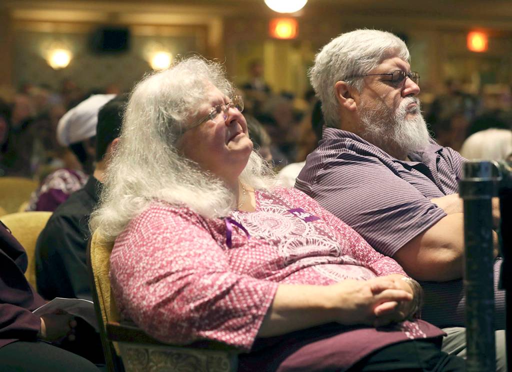 Jody and Brent Dahlseng, of Rockford, Illinois, said they were traveling to Virginia Beach for vacation and made a special stop. They stood outside the theater with purple ties around their shoulders.