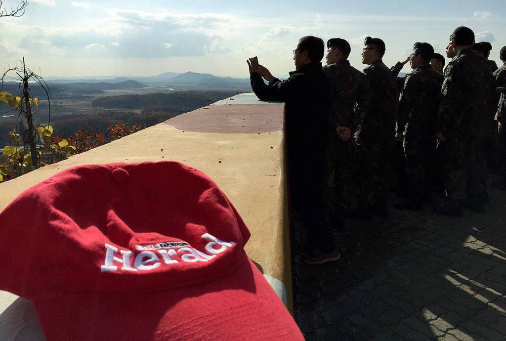 Dora Observatory looks across the Demilitarized Zone and into North Korea, with mounted binoculars for better viewing. It is a popular spot for tourists, including soldiers and reporters. (Andrea Brown / The Herald)