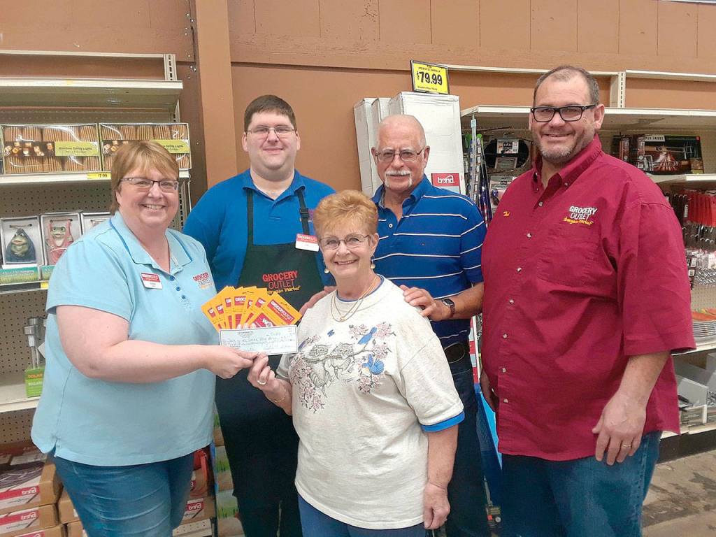 Debbie and Todd Jackson from Everett Grocery Outlet donated $2,688, along with 13 $200 gift cards and 29 boxes of nonperishable food to Salt of the Earth Food Bank and Soup Kitchen on Aug. 16. The store held a food drive in July. Contributions came from the owners, employees and customers. Employee Eric Foreman alone helped raise $1,677.