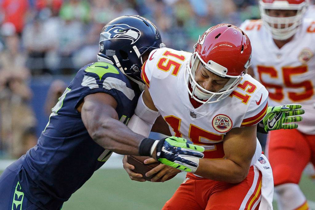 Rees Odhiambo may have, for now, stabilized the offensive line. His steady performance in 2½ quarters Friday against the starting defense on a Chiefs team that went 12-4 and reached the AFC playoffs last season means he’s likely to be the left tackle on opening day with George Fant out for the year. That allows Seattle to keep Luke Joeckel at left guard, as the coaches have wanted all along.