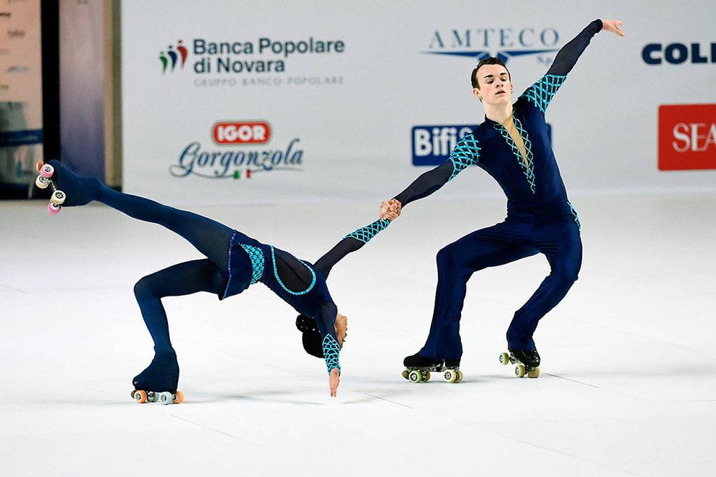 The five members are competing in four different categories in a sport that’s the equivalent of figure skating on wheels. Keaton Mitchell of Lynnwood and Esha Harwalkar of Bellevue will compete in Junior (ages 18 and under) World Class Pairs, Alexis Herbert of Graham and Eric Mueller of Chicago will compete in Senior World Class Pairs, Adrienne Erickson of Seattle will compete in Senior World Class Freestyle, and Herbert will also compete in Junior World Class Freestyle.