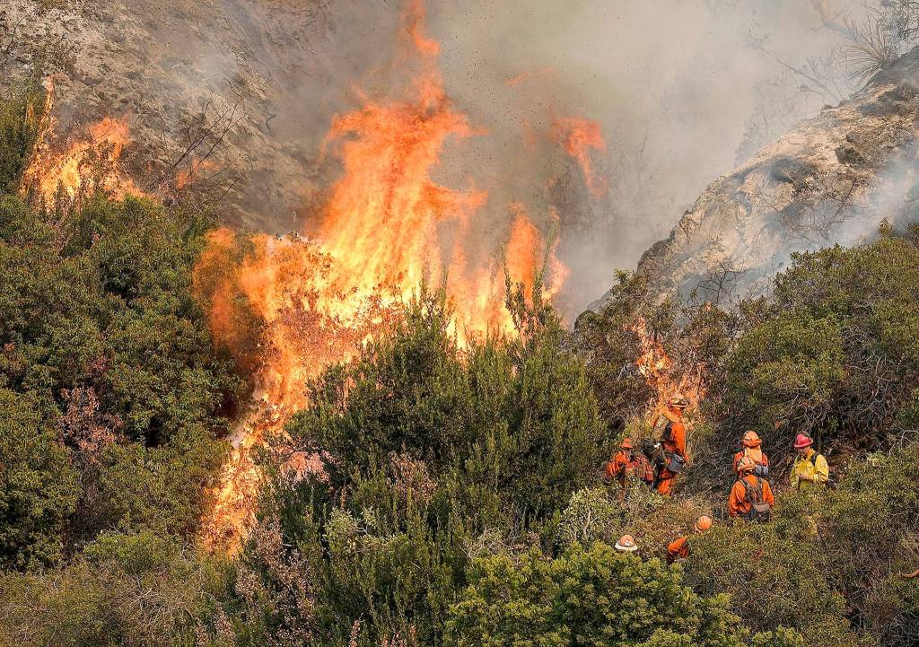 In Los Angeles, hundreds of firefighters battled flames that chewed through nearly 8 square miles of brush-covered mountains as authorities issued mandatory or voluntary evacuation orders for more than 700 homes in Los Angeles, Burbank and Glendale.