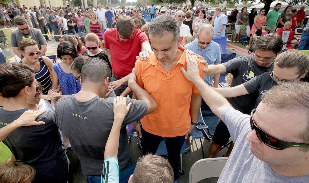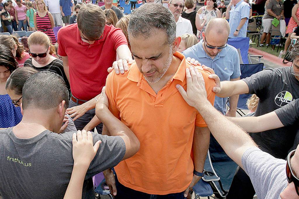 Sunday was declared a day of prayer in Texas and across the nation. At St. Joseph Roman Catholic Church in the Gulf Coast city of Port Aransas, the clergy set out holy water and bug spray, and many anointed themselves with both.