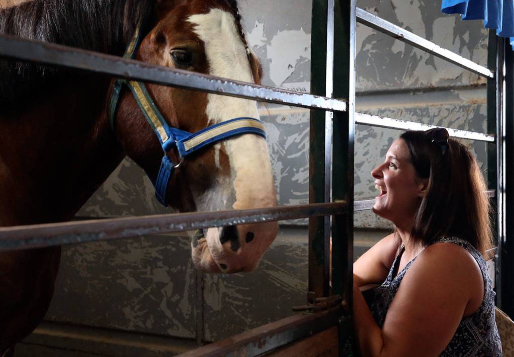 But she did wonder how people ride Clydesdales. A step stool didn’t seem adequate to mount the huge animals, she said. Perhaps a ladder would be needed.