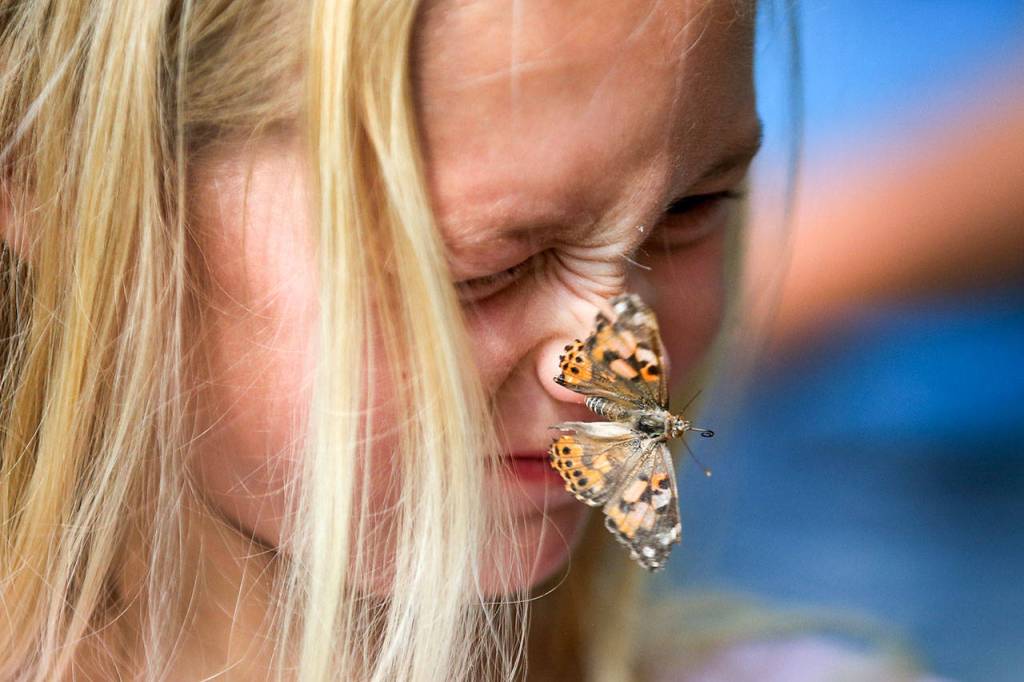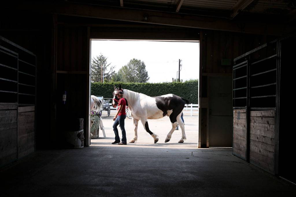 Grace Simpson, 8, of Woodinville, petted a Clydesdale named Zeke on the nose. She thought he was unique. He had one black foot and three white feet. She said she wasn’t afraid even though Zeke was twice her height.