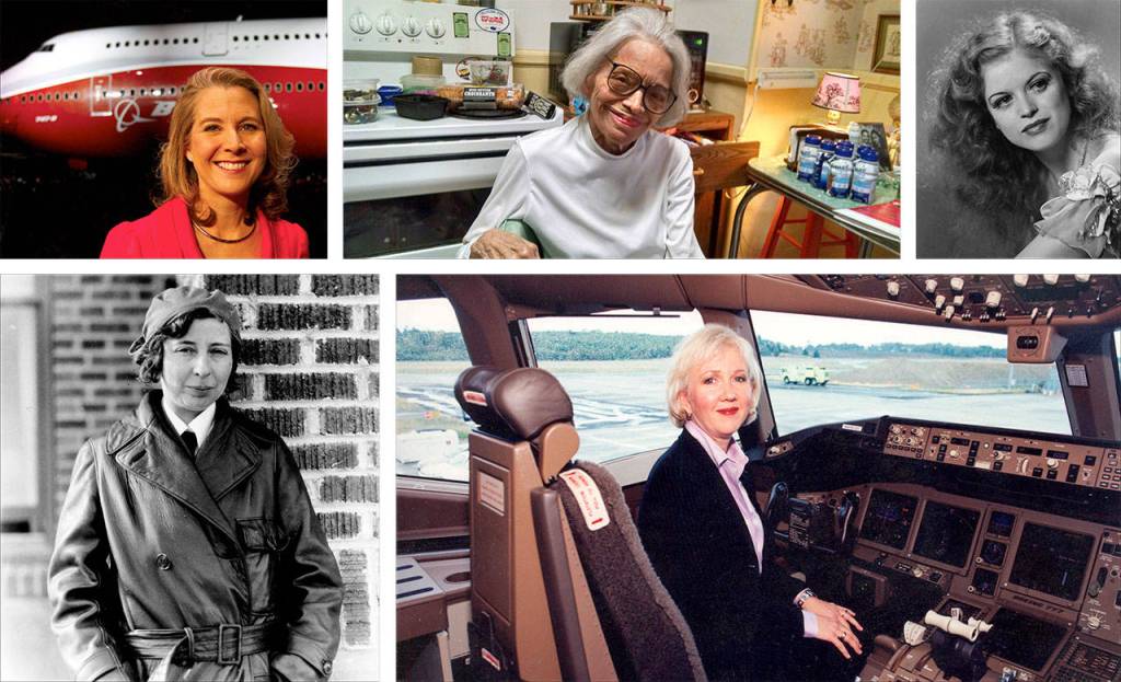 Here are some of the women in Boeing past and present who should be looked to for inspiration for future generations. Clockwise from top left: Elizabeth Lund, Anabella Morgan, Bessie Hall Dempsey, Suzanna Darcy-Hennemann and Ellen Church.