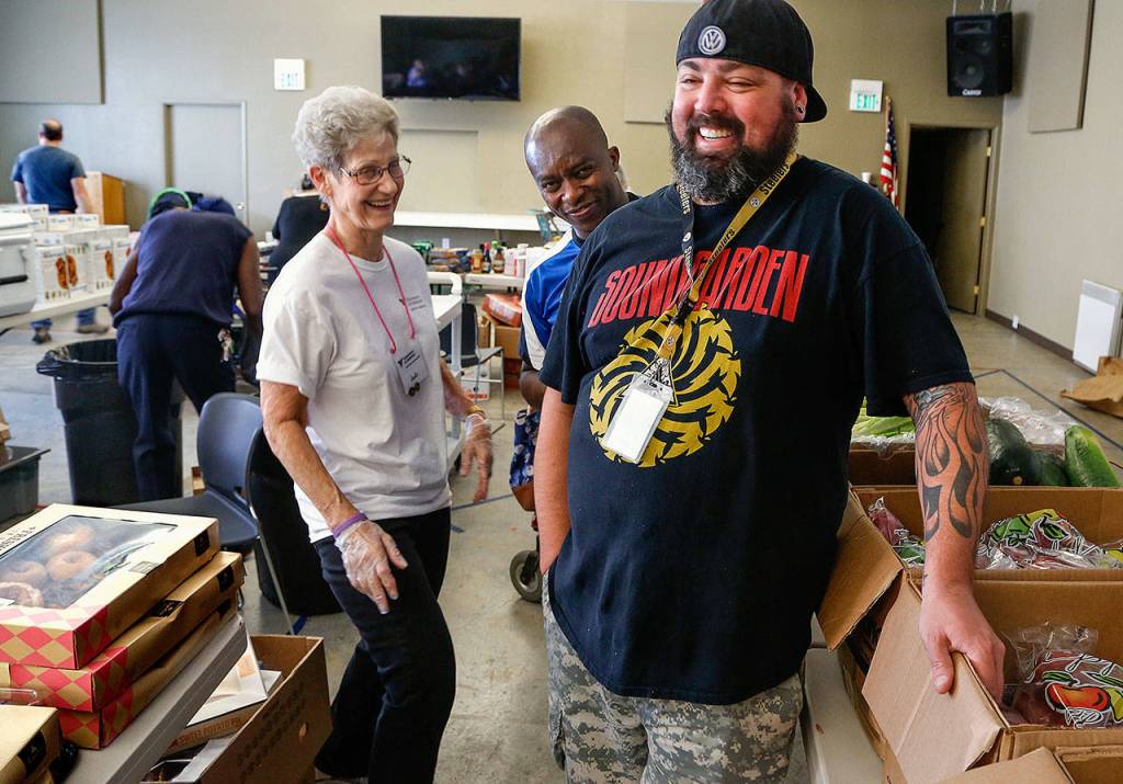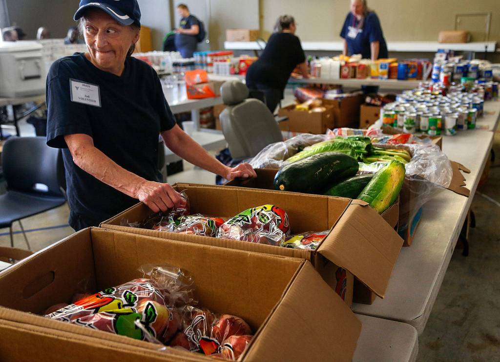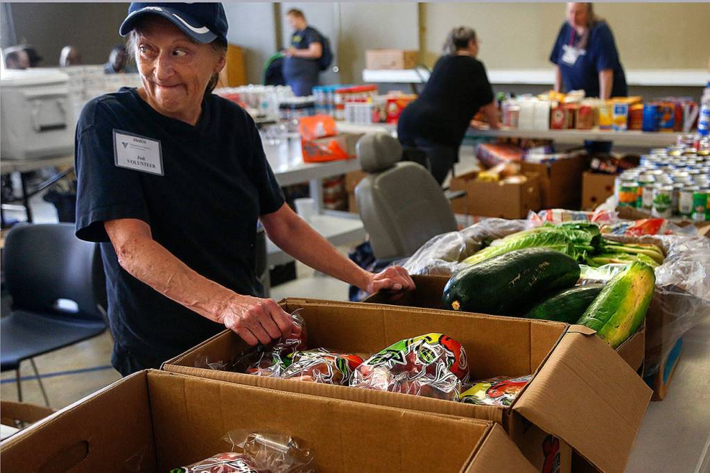 Nelson is both a customer and a volunteer at the pop-up food bank in south Everett. In that way, she is like many of the people who distribute food — apples, zucchini, potatoes, canned veggies, meat, sweets — at Bible Baptist Church on West Casino Road.