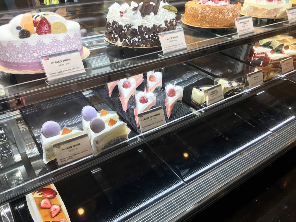 Customers grab a tray and tongs and go through dozens of pastries that line shelves around the store, said Christopher Jocson, marketing manager. Cakes can be selected at the front.