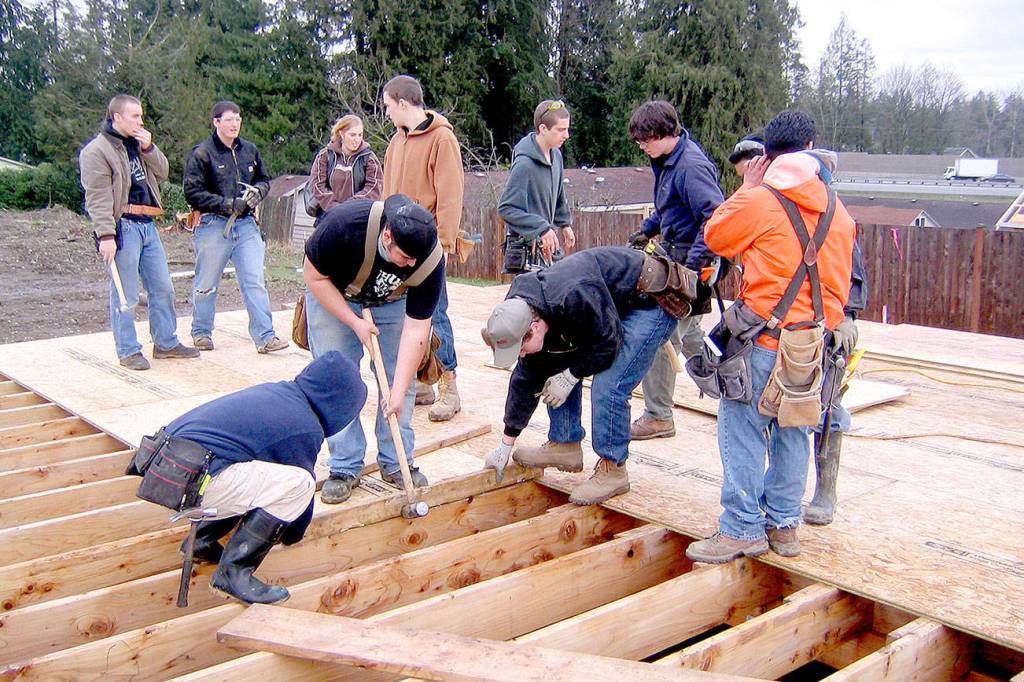 For many years, the students built almost every part of the houses. They set stakes for the excavator, installed cedar-shake roofing, hung and finished drywall with a contractor, strung wire and nailed boxes for the electrician, painted the interior and exterior and even lacquered trim. They also installed hardwood and laminate floors. In fact, they did everything except the excavation, masonry, electrical, plumbing, countertops and carpeting.