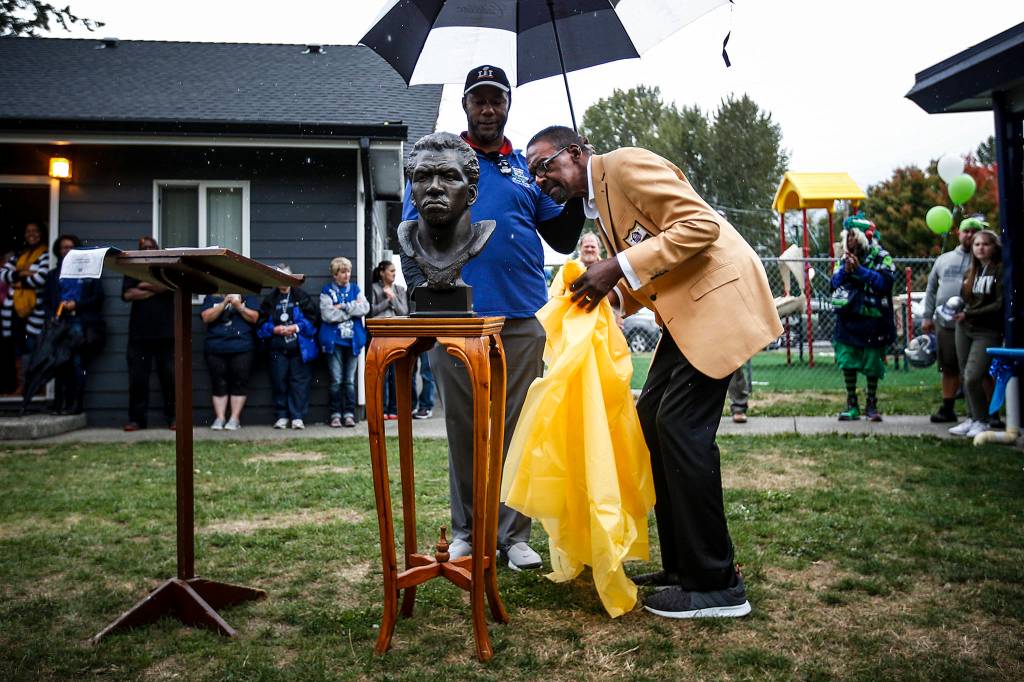 Easley was at Greater Trinity Academy in south Everett on Saturday afternoon for a ceremony in which a replica of his Hall of Fame bust was unveiled. The bust will spend the next year at the school, which serves disadvantaged children ages 2-12 in the Everett community.