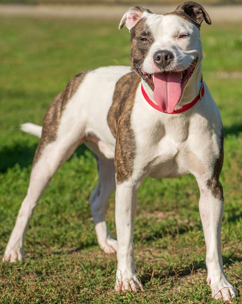 Winston is our wild child! He is super active with a heart of gold. This guy is in need of training and plenty of daily exercise and activities. He is not suited for any type of apartment living — he would not be happy and neither would his neighbors. He has done OK with other dogs here but will need a meet-and-greet. Winston is sure to chase cats so he will need a feline-free home. He does not realize how big he is and will knock small children over in all his exuberance! (Curt Story/Everett Animal Shelter)