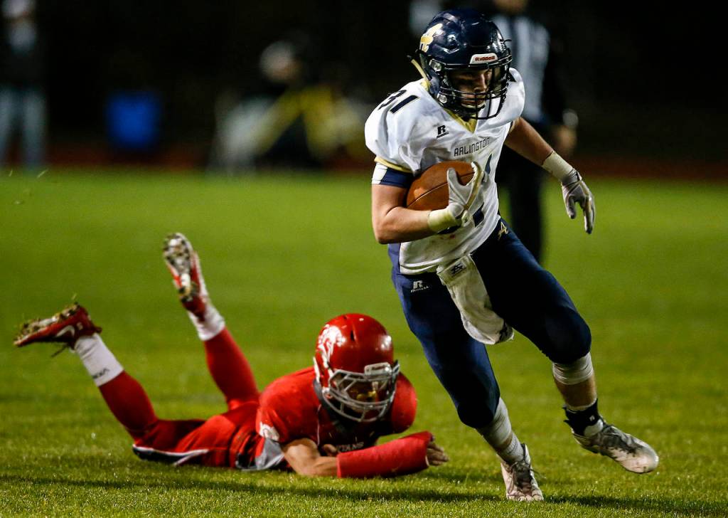 STANWOOD — It was a fourth quarter that had more twists and turns than a Chubby Checker song set on repeat. But when the final twist occurred, it was the Arlington Eagles who found themselves lifting the Stilly Cup yet one more time.