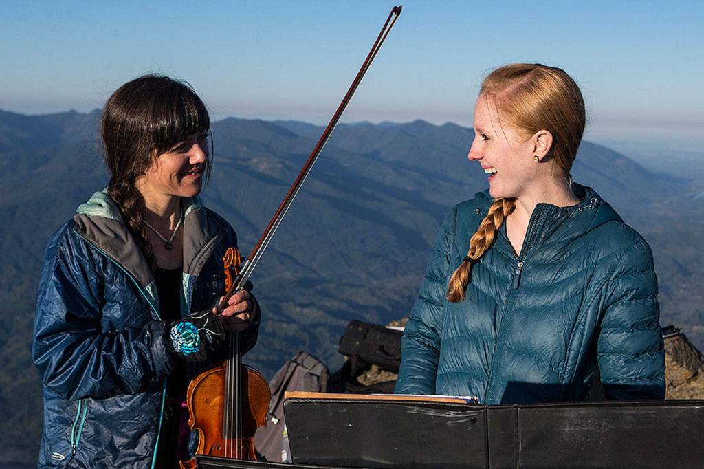 Anastasia Allison and Rose Freeman found each other in a roundabout way through an Instagram book giveaway. Rose plays classical piano and Anastasia plays classical violin, so naturally they thought of the idea to hike their instruments to the top of local mountains and play together.