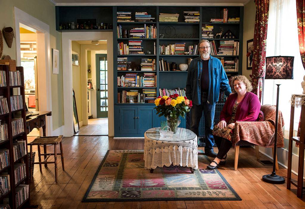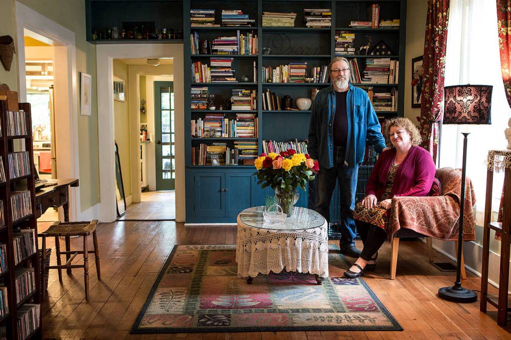 Keene and Schultz live on the south end of Lewis Street, the boulevard section just before you reach the Skykomish River. Their home, a 1903 little beauty, has a 100-year-old holly tree out front and a back garden — complete with egg-laying chickens — that is delightful in the summer. It’s a place their six grandchildren love to visit.