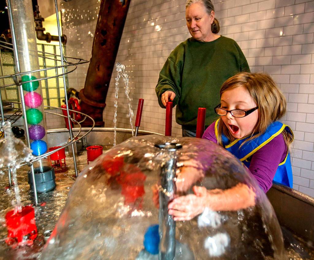 While some of that is parents, grandparents and others keeping up as kids move from exhibit to exhibit, the adults often are also closely engaged with children as they juggle floating balls at the water table, experiment with musical instruments or simply read aloud in the tree house.