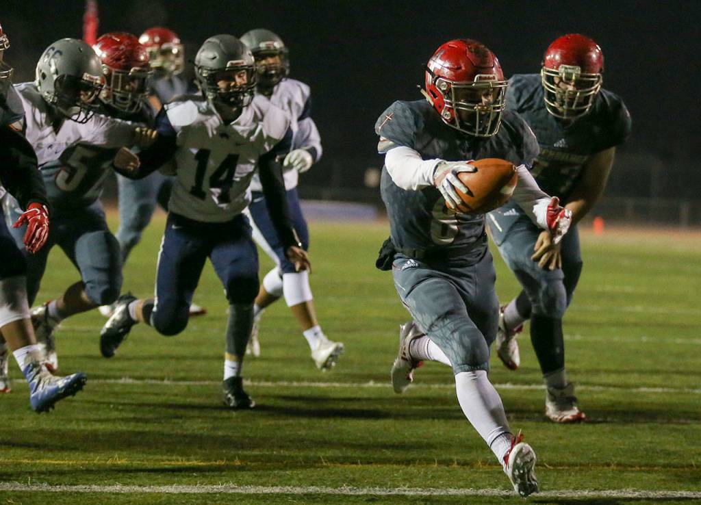 Pimentel’s damage was done on just 14 carries while the back put on a dazzling display, carving up the Hawks defense using a rare blend of speed, balance and vision. Kyler Gordon made plays, too. The senior, who’s fielding multiple Division-I offers from high-profile schools, caught four passes for 145 yards, including a 60-yard TD reception.