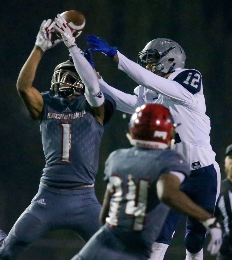 Archbishop Murphy’s defense created four first-half turnovers, all interceptions off River Ridge quarterback Tomasi Manu, and the Wildcats yielded only 30 rushing yards on 17 attempts. Hines and defensive linemen Matt Keck, Martin Napeahi and J.P. Quinn plugged holes and left little daylight for River Ridge’s backs.