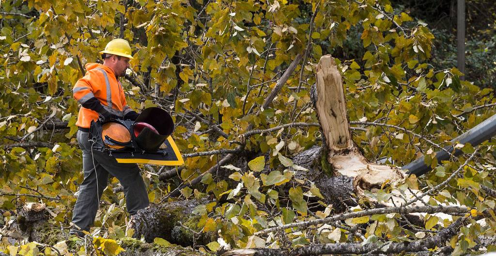 Windstorm felled trees and cut power to 45,000 customers