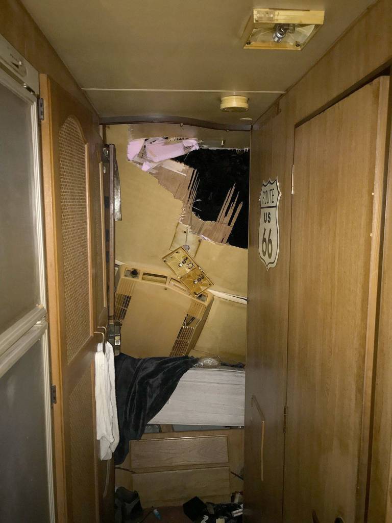 In Arlington, a tree crushed an RV where a man slept.