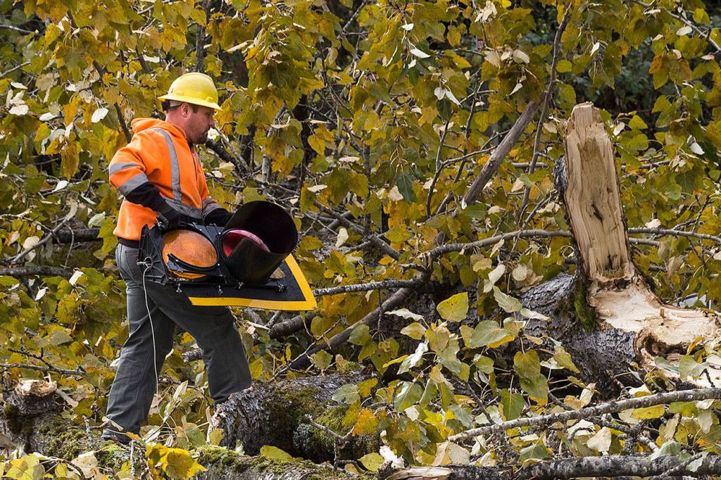 Fall’s first major windstorm left its mark on Snohomish and Island counties overnight Sunday and well into Monday evening. It caused damage from Woodway to Arlington.