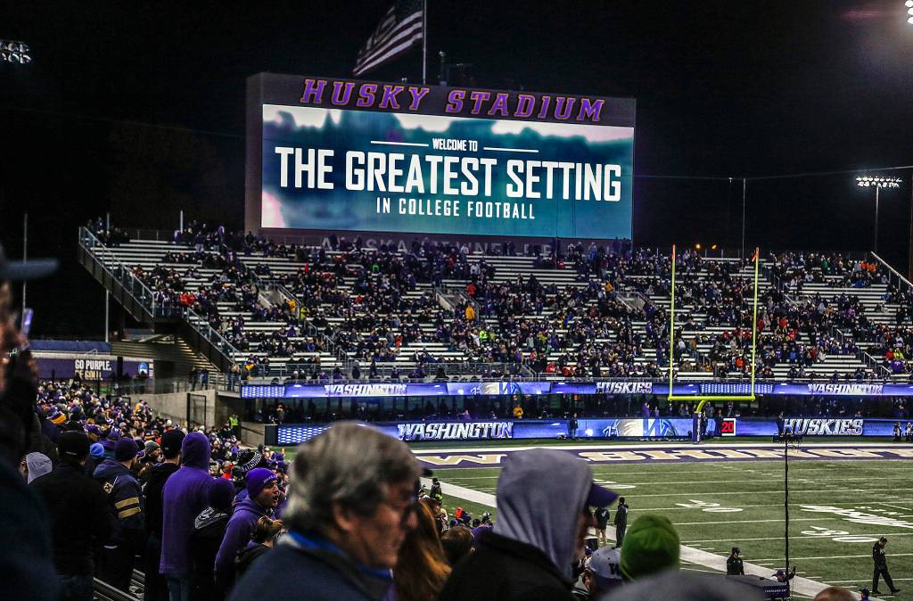 After Saturday’s game, Stanton didn’t get home until about 1 a.m. Not wanting to drive back after some late games, she has taken Link light rail to downtown Seattle and stayed in a hotel. With a friend, she has come to Husky games by boat. They did that once in darkness, but have now decided against boating to night games.