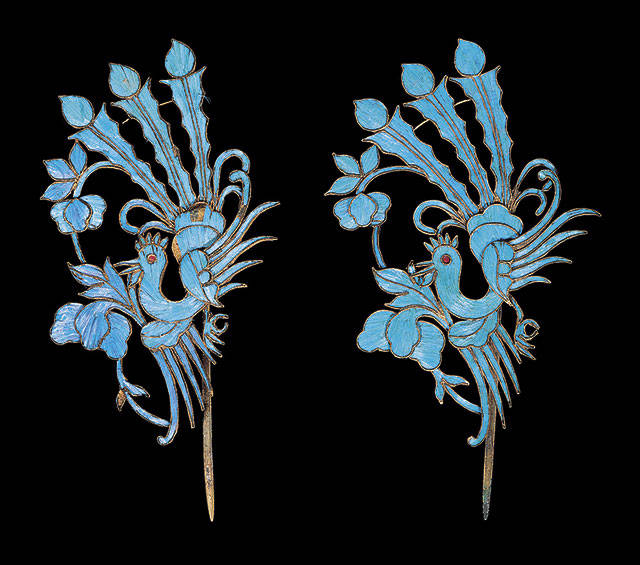 Bird feathers adorn delicate Chinese jewelry