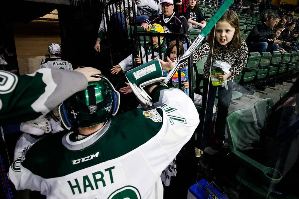 “I love playing here,” Hart said when asked if he’s paid attention to trade speculation. “To be honest, I don’t really see myself playing anywhere else. This is my home away from home. We have a great group of guys this year who I don’t want to leave. I have a great billet in Parker Fowlds and a great roommate in Riley Sutter. It’s a second home for me and I don’t really see myself playing anywhere else.”
