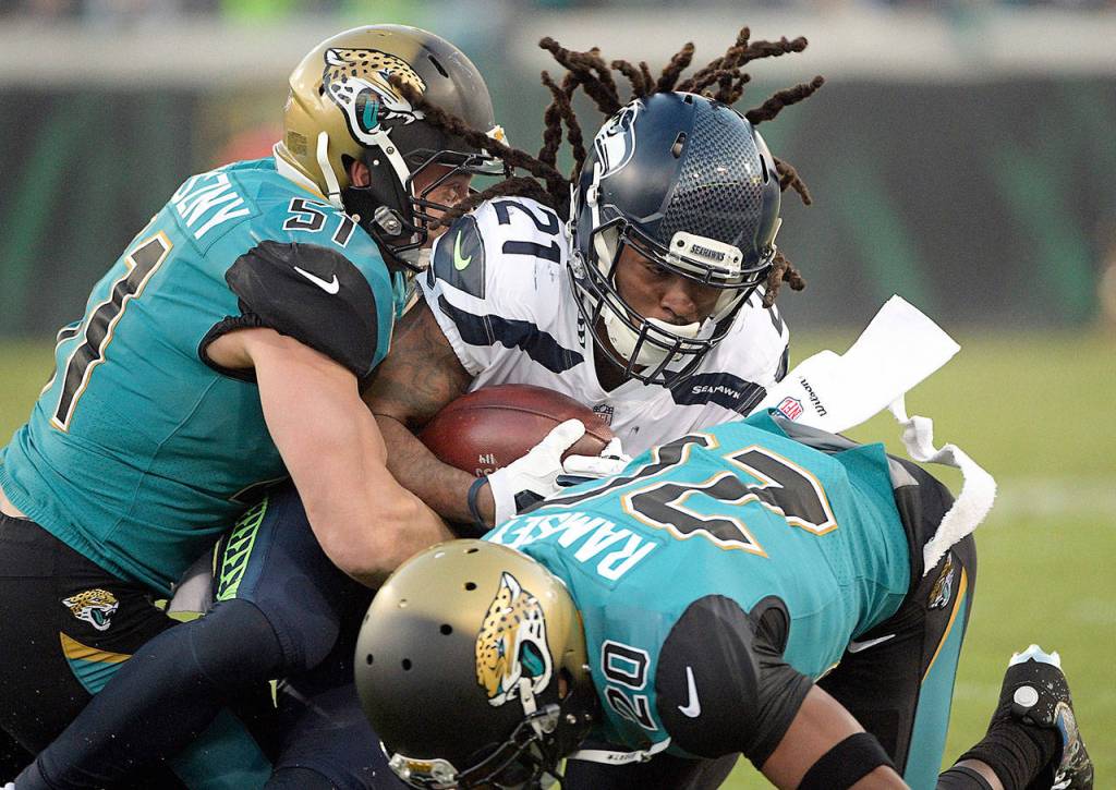 Wilson, meanwhile, had the fourth game of his seven-year career with at least three interceptions. He finished 17-for-31 passing for 271 yards and three touchdowns, too. He also had a running back produce more than he did on the ground for just about the first time this season. Mike Davis had 66 yards on 15 carries — then injured his rib in the second half and did not return. That left the Seahawks in full-pass mode, and Jacksonville able to tilt its defense accordingly.