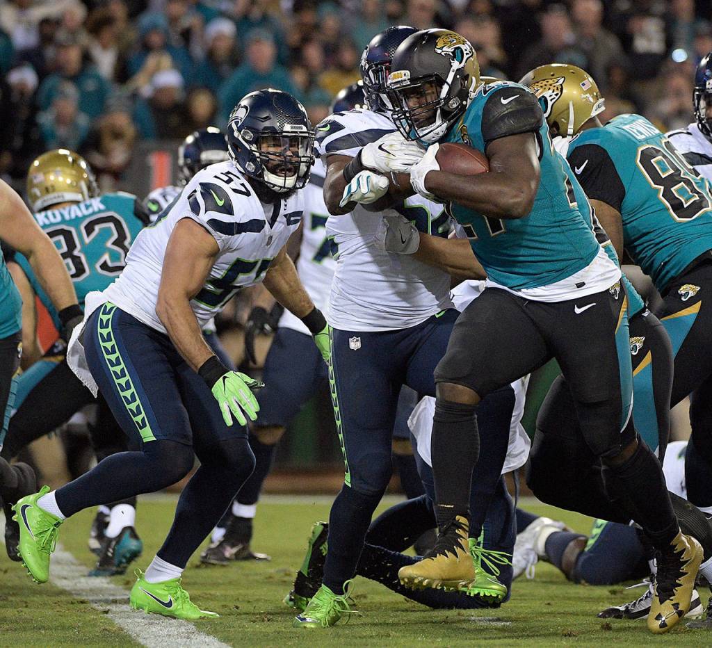 Without him in there late against Jacksonville, the Jaguars clinched their win with a 13-yard run by rookie Leonard Fournette. That won on third and 11. The fill-in linebackers got too eager and far overran their assigned gaps on the play off Jacksonville’s left tackle. That created a boulevard into which Fournette to cut up field for the first down with 1:55 remaining, dooming the last chance for Seattle’s offense to get the ball in the Seahawks’ 30-24 loss.