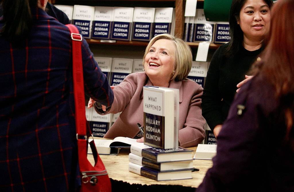 Nearby, Alice Huang hugged a signed copy of Clinton’s latest book, “What Happened,” and with tears in her eyes recounted her brief encounter with the woman she says changed her life.