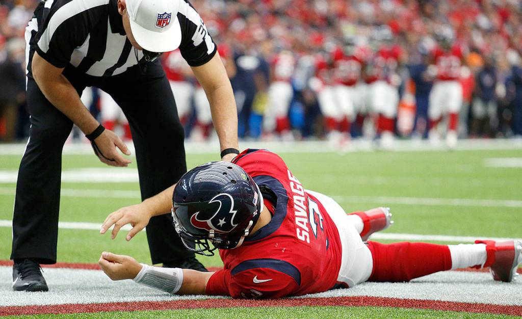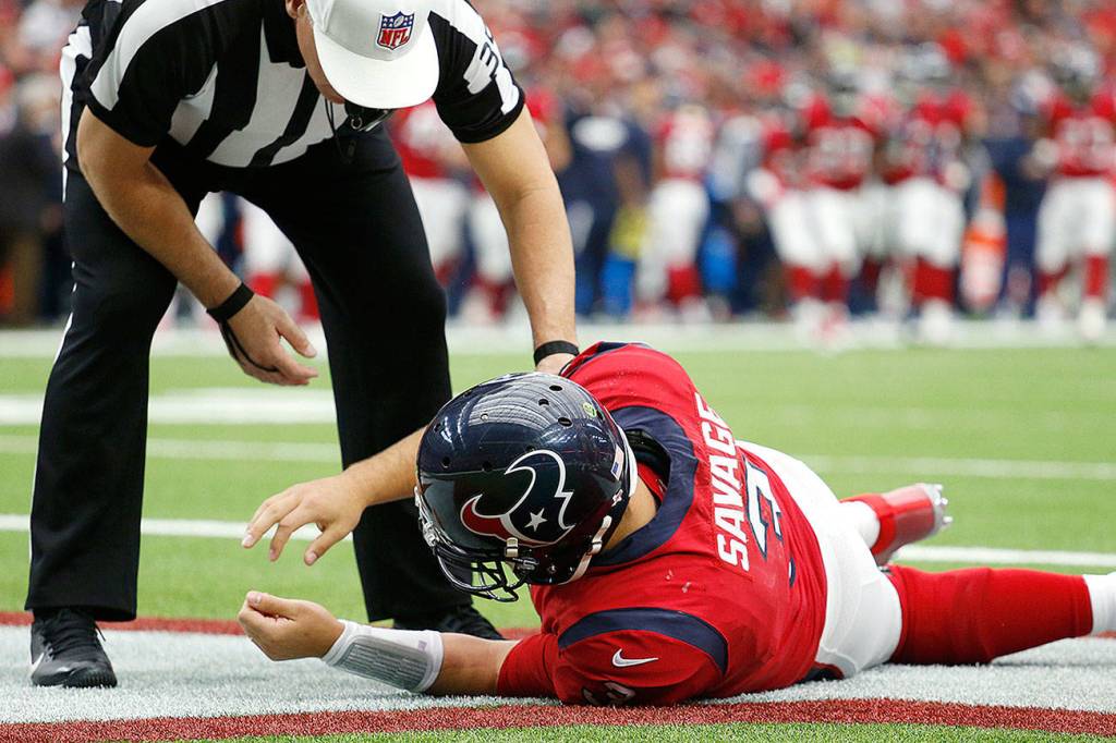 A joint review by the NFL and the NFL Players Association was prompted by the Savage injury. He was hurt in the second quarter of Houston’s 26-16 loss to San Francisco on Dec. 10 when he was driven to the ground on a hit by Elvis Dumervil. Replays showed Savage looking dazed after his head hit the ground with both of his arms shaking and lifted upward. He was taken to the medical tent where he stayed for less than three minutes before returning to the bench and going back in for the next series.