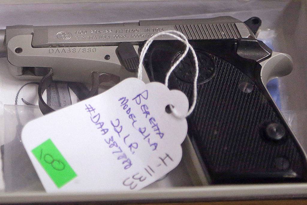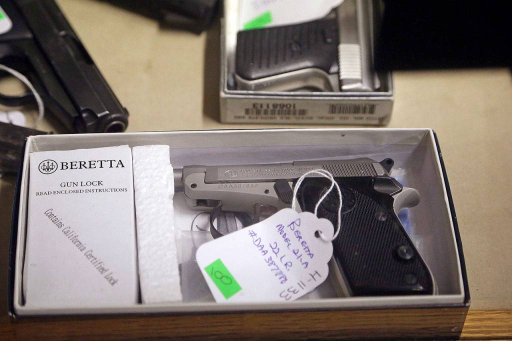 The Spokane County Sheriff’s Office sells its confiscated guns through an auction house in Post Falls, Idaho. Toppenish police trade firearms with the Bowlby’s Gun & Pawn Shop in Yakima.