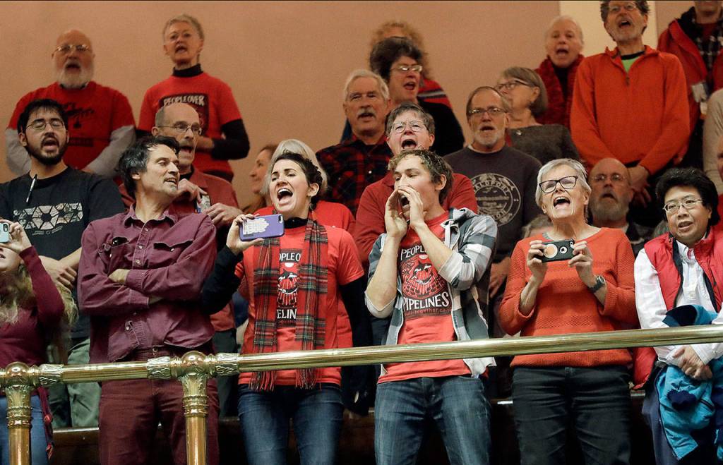 The Sedro-Woolley Republican had just finished taking the oath of office when protesters started chanting in the public gallery overlooking the chamber floor.
