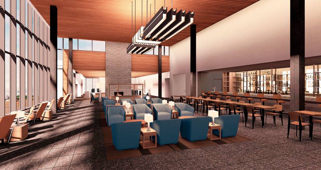 “Once you’re past security, you’ll walk into what looks like a living room with two fireplaces and a bar and a place to get something to eat,” Smith said. “There will be huge glass windows, you can look out onto the mountain range. I think it’s going to be special.”
