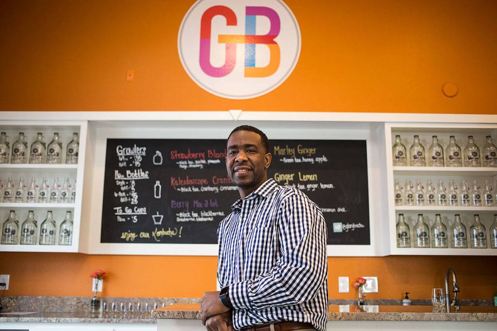Lowell Profit is co-owner of the new GloryBucha brewery in Arlington, which bills itself as the first kombucha bar in Snohomish County. (Andy Bronson / The Herald)