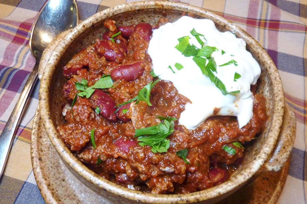 Chili con carne is as American as the Super Bowl. Some like it hot, some like it mild, but almost everyone likes chili. It’s a perfect dinner for Super Bowl weekend coming up. Here’s a recipe that’s great for parties and great for a quick, easy dinner for two.